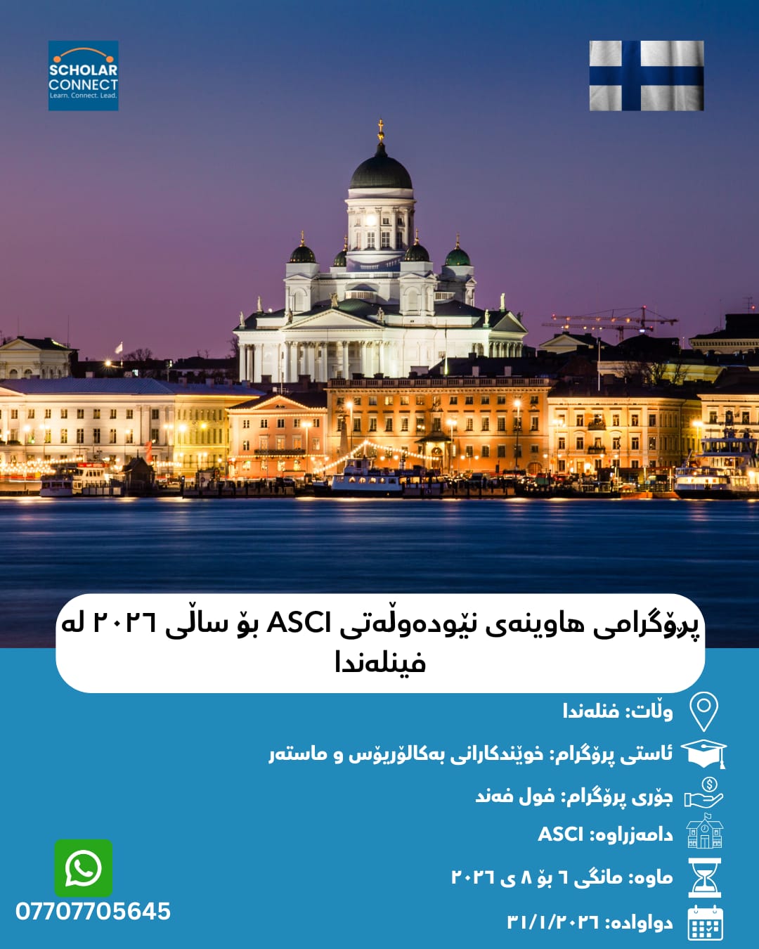 پڕۆگرامی هاوینەی نێودەوڵەتی ASCI بۆ ساڵی ٢٠٢٦ هەلێکی نایابە بۆ بەسەربردنی هاوین لە فینلەندا لە ڕێگەی راهێنانێکی توێژینەوەی بە تەواوی فەند کراوە لە “پەیمانگای زانستی ئاڵتۆ” (Aalto Science Institute).